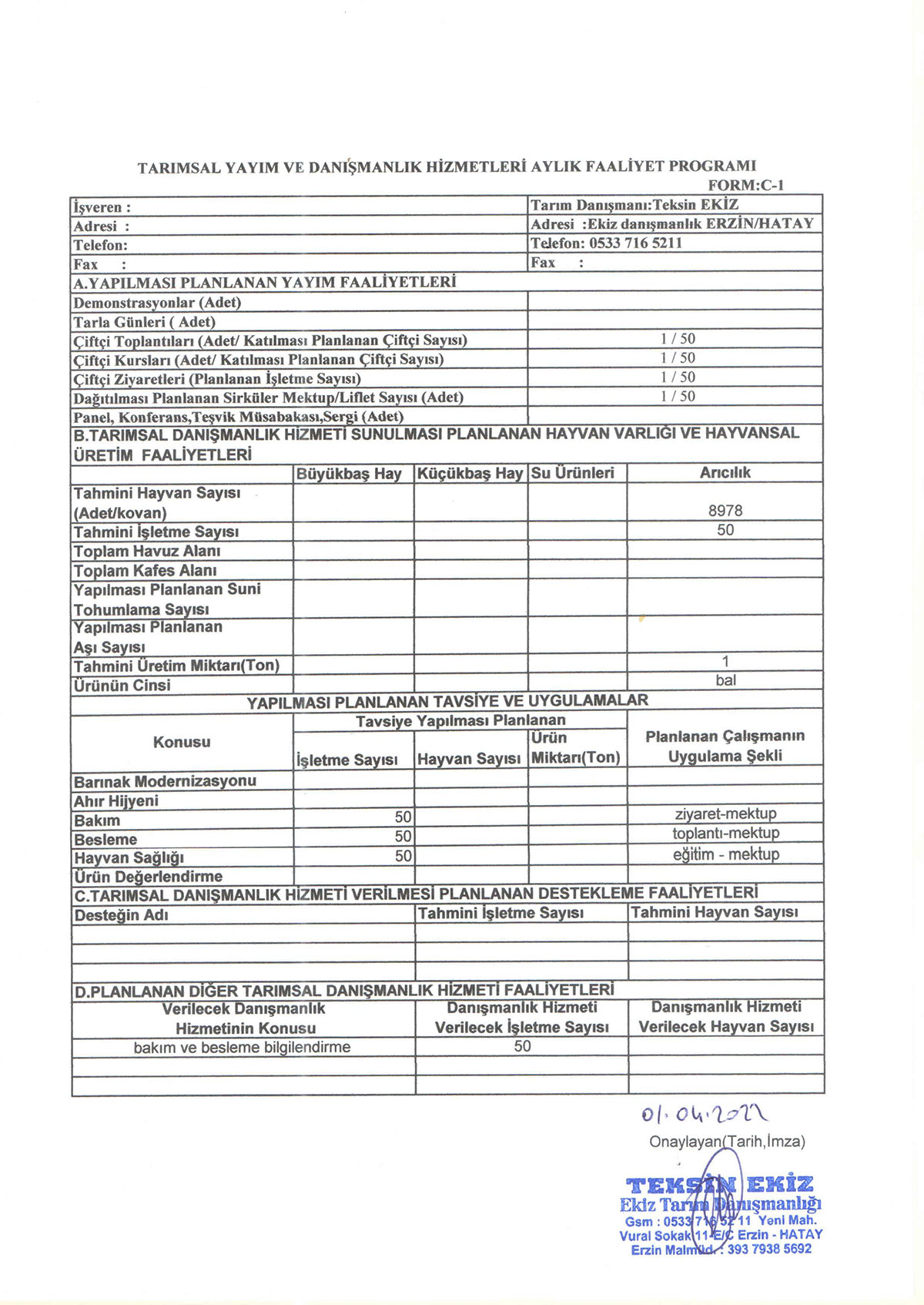 AYLIK VE YILLIK ÇALIŞMA PLANLARI AYLIK PLANLAR 2022 Mayıs 2022 Nisan 2022 Mart 2022 Şubat 2022 Ocak 2021 Ekim 2021 Eylül 2021 Ağustos 2021 Temmuz 2021 Haziran 2021 Mayıs 2021 Nisan 2021 Mart 2021 Şubat 2021 Ocak 2020 Ekim 2020 Eylül 2020 Ağustos 2020 Temmuz 2020 Haziran 2020 Mayıs 2020 Nisan 2020 Mart 2020 Şubat 2020 Ocak 2019 Eylül 2019 Ekim YILLIK PLANLAR 2021 6 AYLIK (Form B) 2020 6 AYLIK (Form B) 2019 6 AYLIK 2018 YILLIK HATAY İLİ 2022 YILI YAYIM PROGRAMINDA YER ALAN FAALİYETLERE YÖNELİK OLARAK YAPILAN TESPİTLER (Form A) HATAY İLİ 2020 YILI YAYIM PROGRAMINDA YER ALAN FAALİYETLERE YÖNELİK OLARAK YAPILAN TESPİTLER (Form A) EKİZ DANIŞMANLIK Yeni Mah. Mahmutlu Cad. No: 11/3Erzin Hatay Tel: 0 (533) 716 52 11 SİTE HARİTASI Anasayfa Hakkımızda Mevzuatlar İletişim LİNKLER Tarım ve Orman Bakanlığı Eğitim ve Yayınlar Daire Başk. SOSYAL MEDYA Takip Et